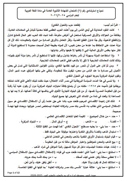 - حل نموذج 6 عربي ثانوية عامة 2026