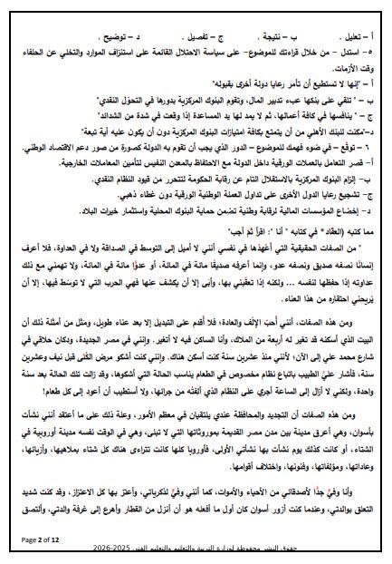- مراجعة اللغة العربية ثانوية عامة 2026