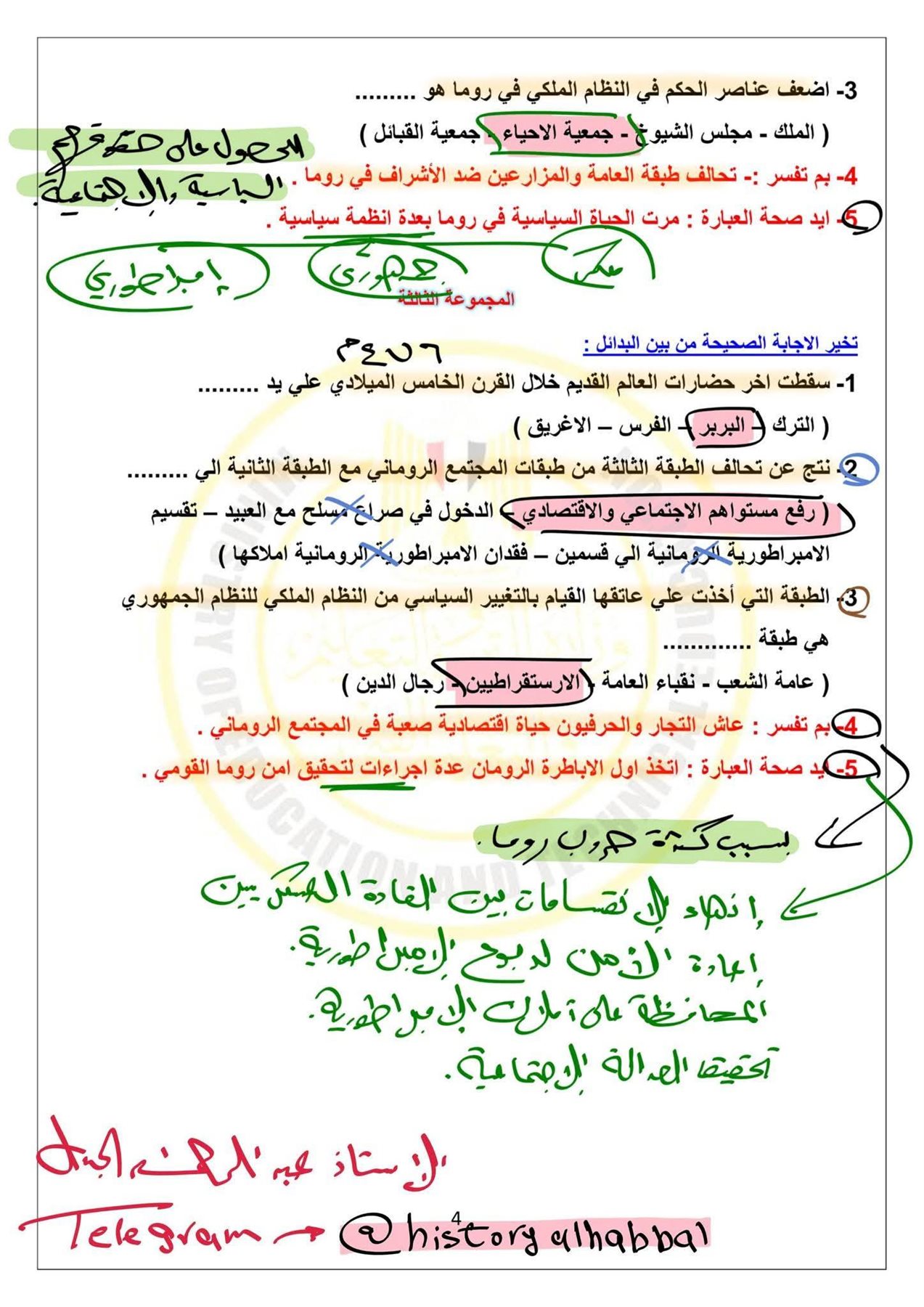 - أهم أسئلة التاريخ الصف الأول الثانوي ترم ثاني