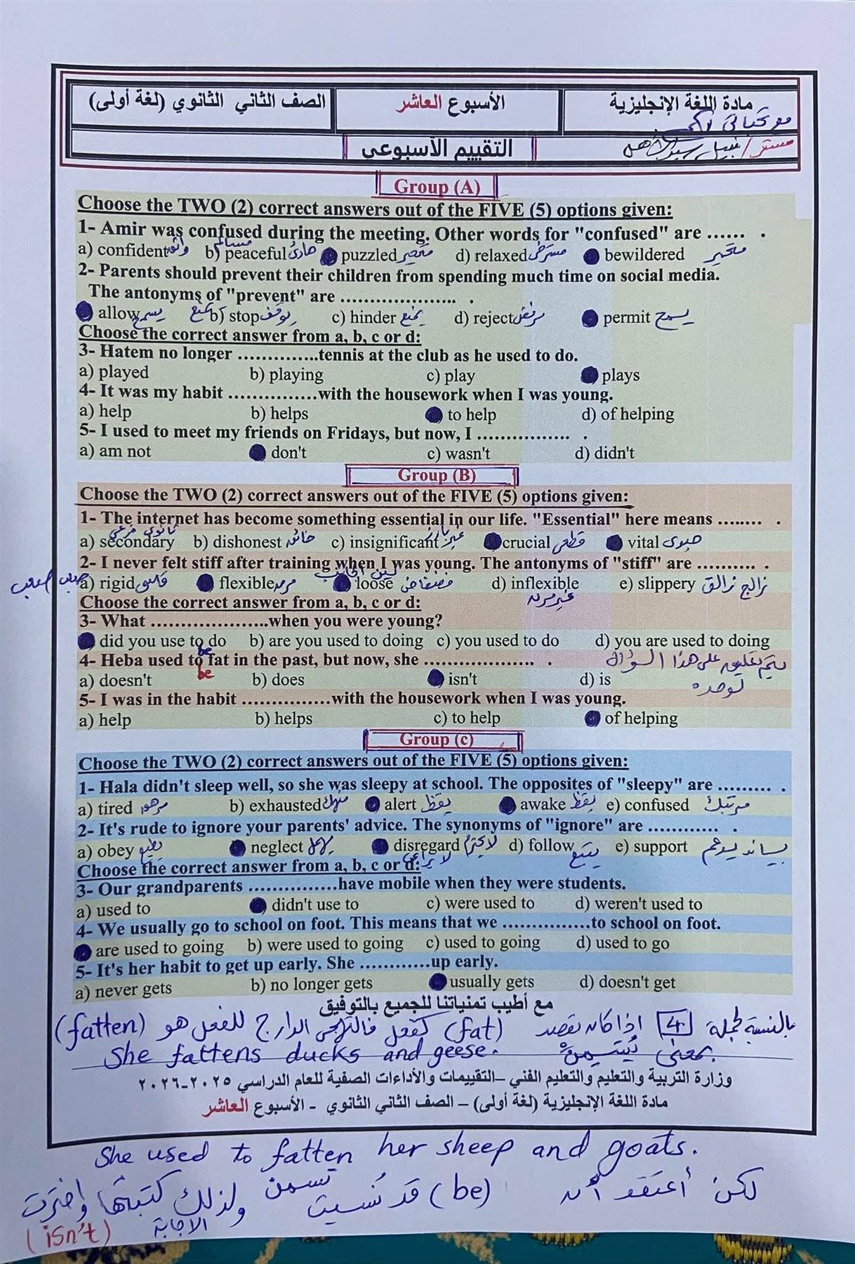 طلاب ثانية ثانوي علمي وأدبي.. بالاجابات تقييم الأسبوع العاشر إنجليزي ترم ثاني