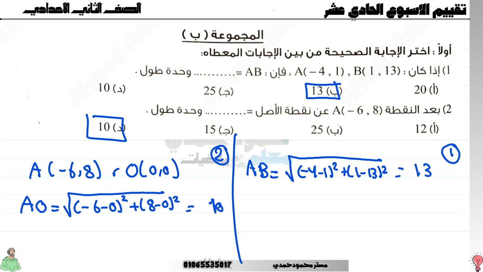 - تدريب رياضيات ثاني إعدادي