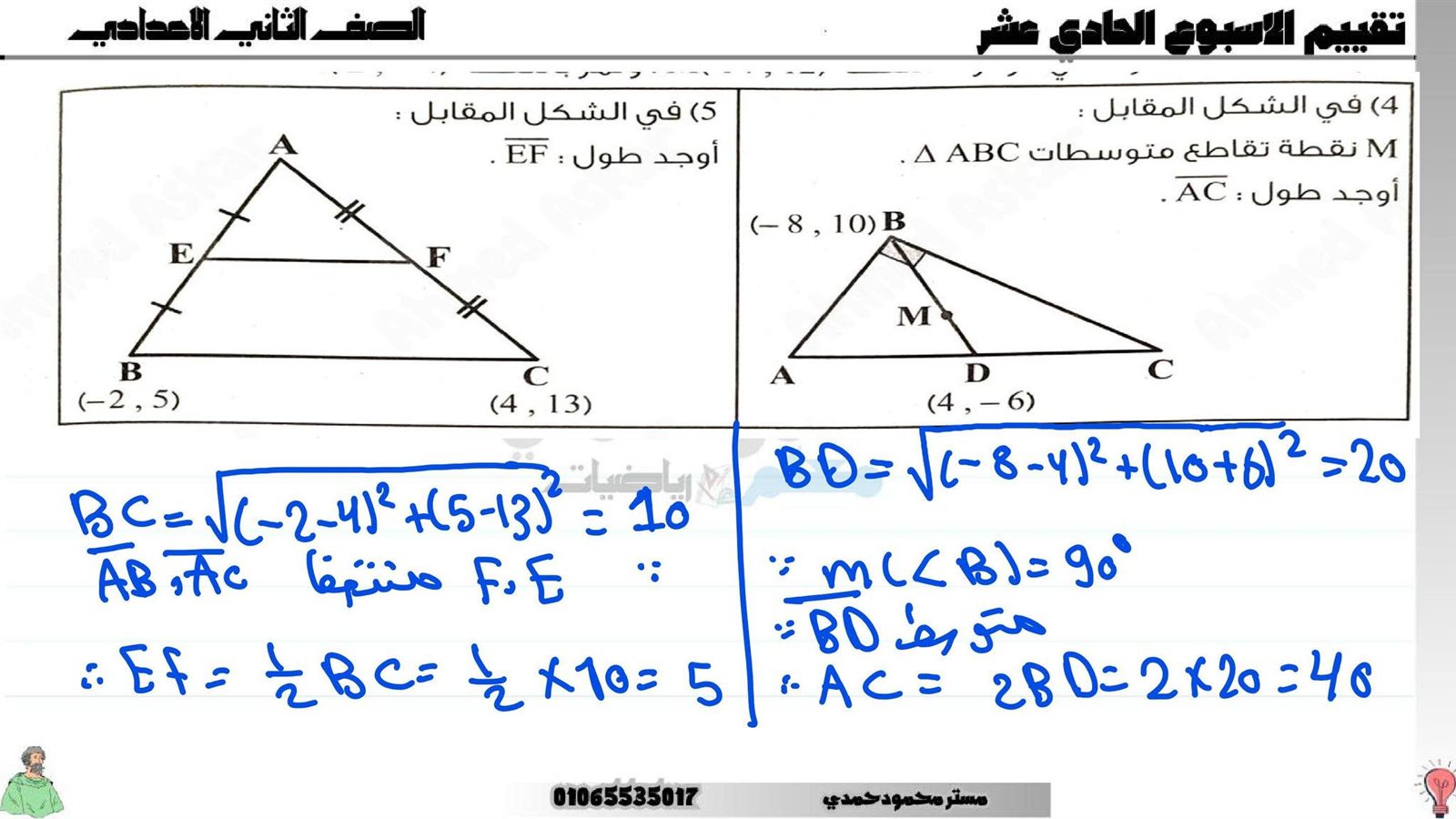 - مراجعة شاملة رياضيات ثاني إعدادي