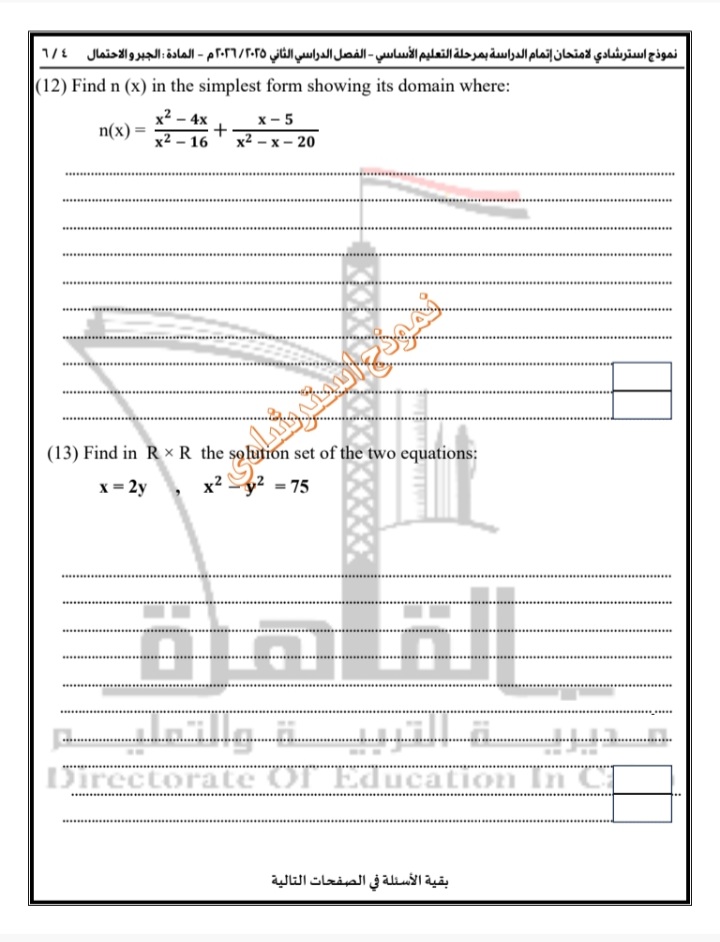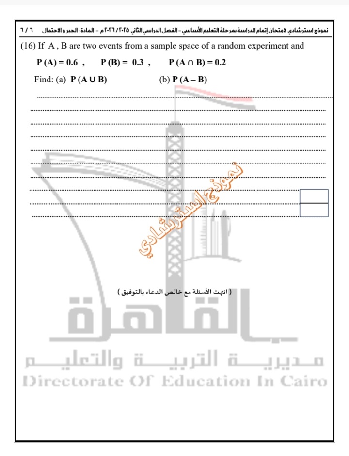 نموذج استرشادي.. في إطار الاستعدادات المكثفة لامتحانات الفصل الدراسي الثاني للعام الدراسي 2025/2026، أعلنت مديرية التربية والتعليم بالقاهرة عن إتاحة نموذج استرشادي جديد بنظام البوكليت في مادة Algebra and Probability لطلاب الشهادة الإعدادية 2026، وذلك ضمن خطة متكاملة تستهدف رفع جاهزية الطلاب وتعريفهم بشكل عملي بطبيعة الامتحانات المقبلة، خاصة في ظل الاعتماد على أساليب تقييم حديثة تقيس الفهم والتحليل بدلًا من الحفظ.