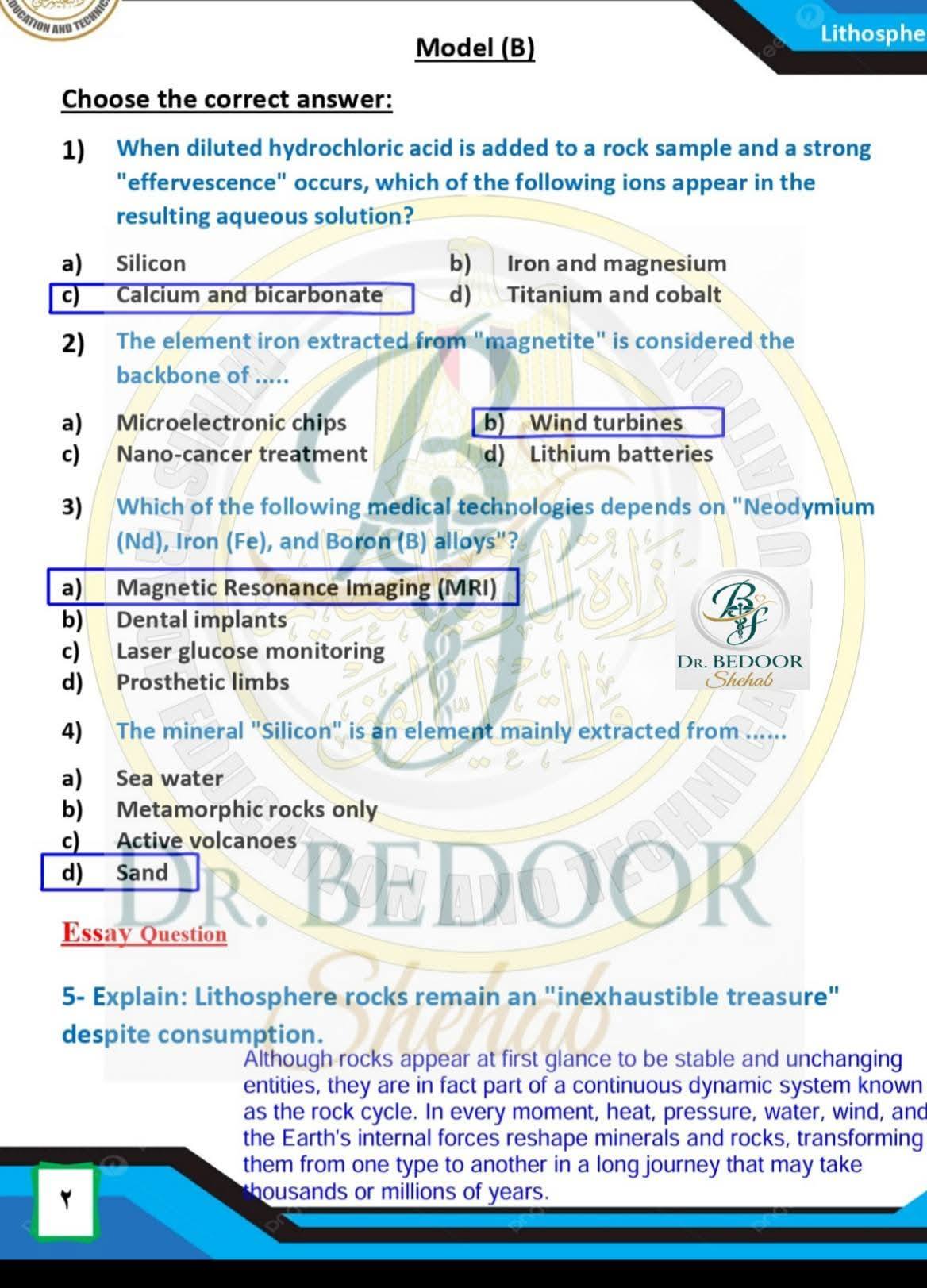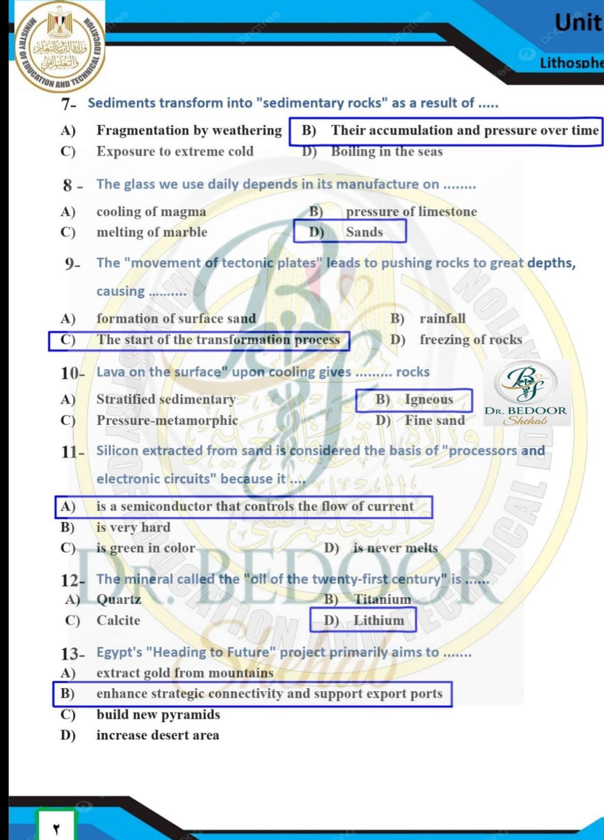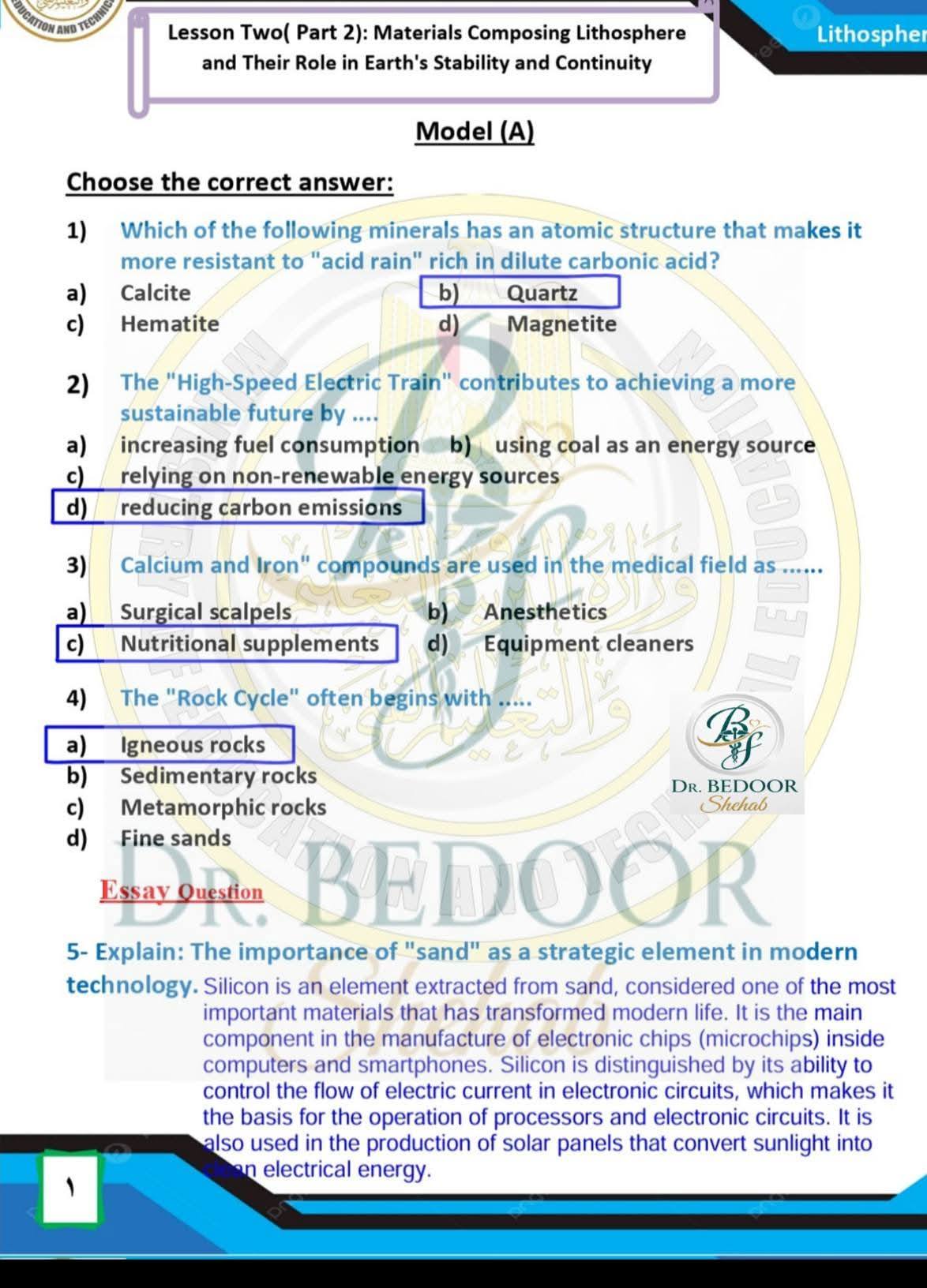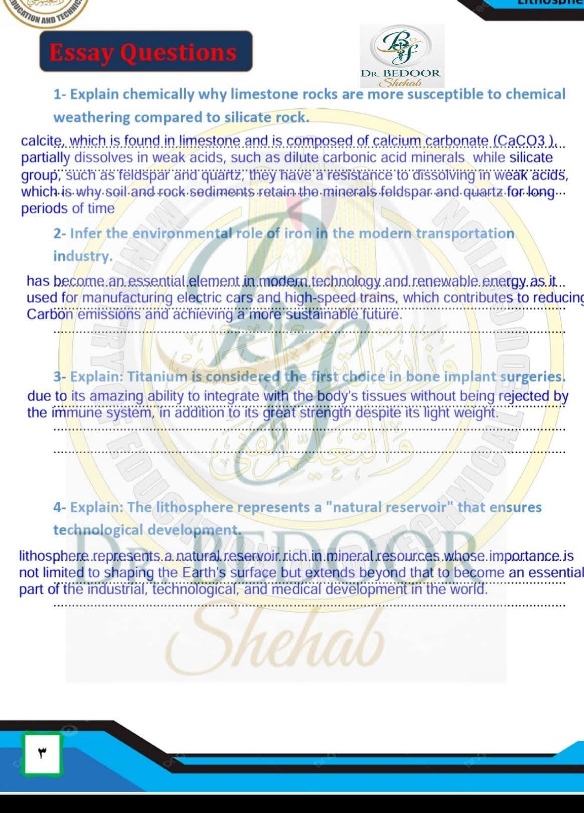 أسئلة متوقعة وإجابات نموذجية في الأسبوع العاشر العلوم المتكاملة أولى ثانوي