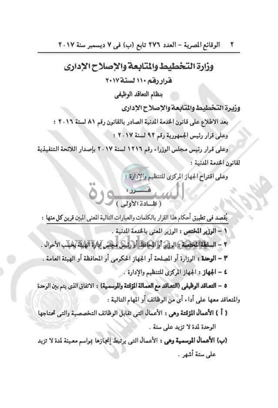 بالمستندات| ننشر تفاصيل قرار وزارة التخطيط بشأن نظام التعاقد الوظيفي لجميع العاملين بالدولة