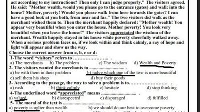 اختبار لغة عربية عن شهر فبراير لطلاب ثانية إعدادي