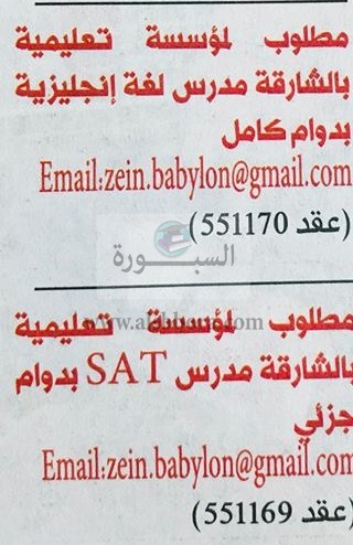 تعلن مدارس الشارقة الإماراتية عن وظائف جديدة للمعلمين والمعلمات وذلك وفقا لنص الإعلان التالي:-