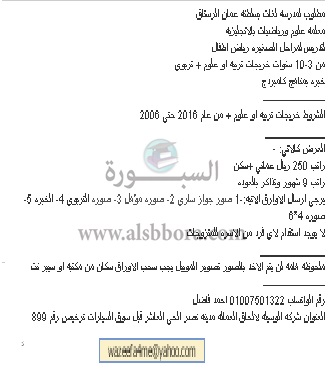 تعلن مدرسة خاصة في سلطنة عمان عن وظائف جديدة للمعلمين والمعلمات وذلك وفقا لنص الإعلان التالي:-