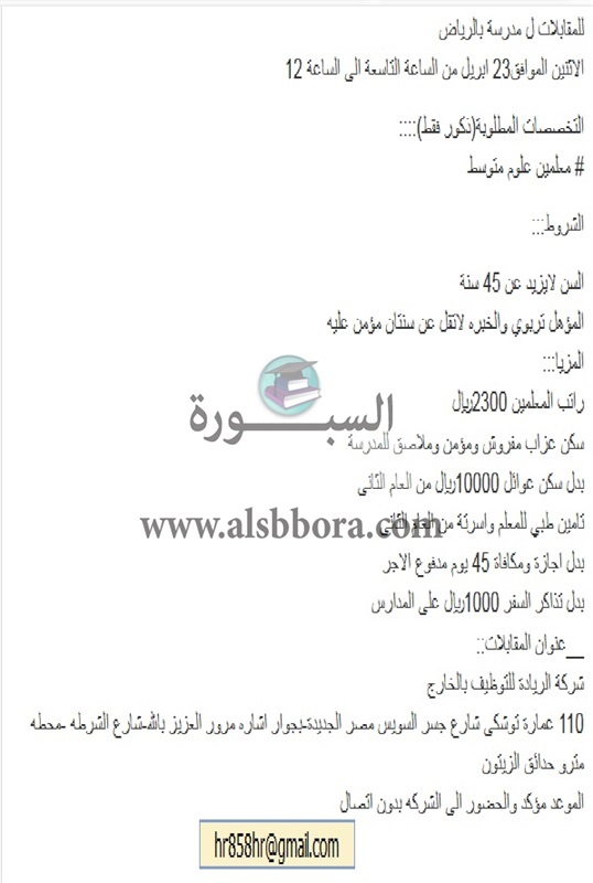 أعلنت مدرسة خاصة في السعودية عن وظائف جديدة للمعلمين والمعلمات وذلك وفقا لنص الإعلان التالي: