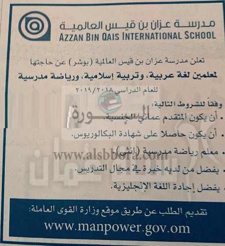 تعلن مدارس عزان بن قيس العمانية عن وظائف جديدة للمعلمين والمعلمات وذلك وفقا لنص الإعلان التالي