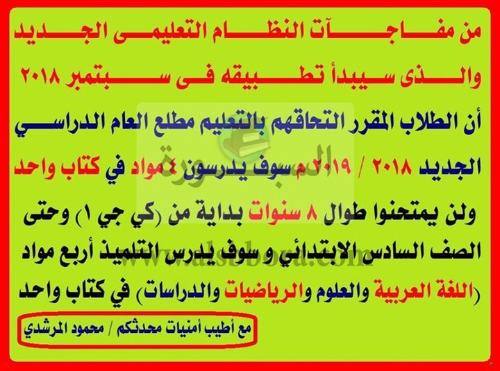تداول عدد من النشطاء علي موقع التواصل الاجتماعي "فيسبوك" مفاجآت النظام التعليمى الجديد الذي سيبدأ تطبيقه فى سبتمبر 2018 والتي تمثلت في الآتي:-