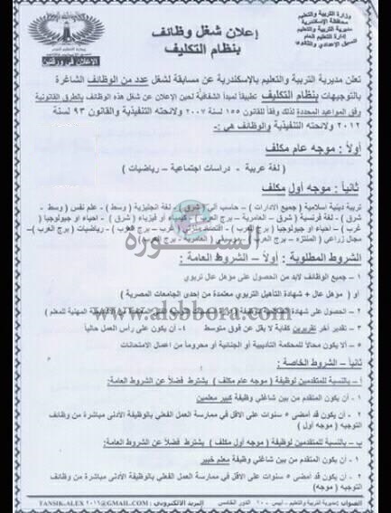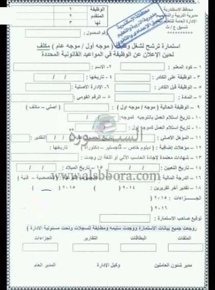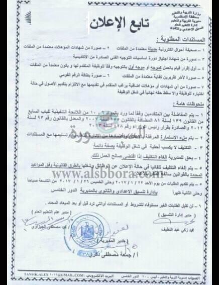 أعلنت مديرية التربية والتعليم عن وظائف شاغرة بالتوجيهات بنظام التكليف، وينشر موقع السبورة الشروط الواجب توافرها واستمارات التقديم.