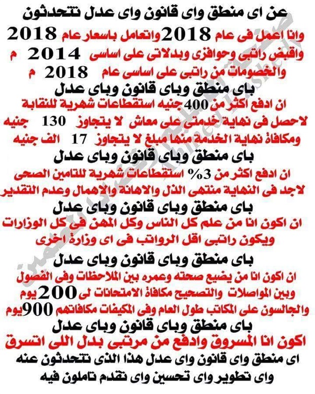دشن نشطاء التعليم على موقع التواصل الاجتماعى "فيسبوك" كوميكسا عن الحالة التى يعيشها المعلمون خلال الفترة الحالية والخصومات والاستقطاعات من الراتب على اساسى 2018، بينما يتم صرف مرتباتهم وبدلاتهم ومكافآتهم على اساسى 2014.