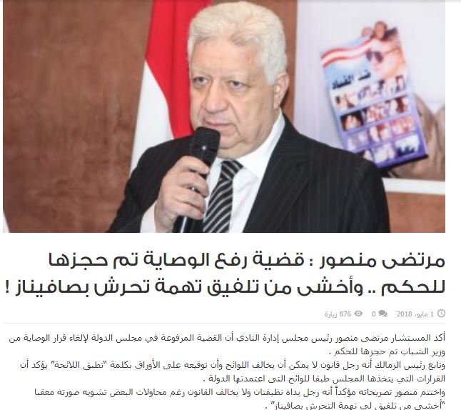أعلن مرتضى منصور رئيس مجلس إدارة نادى الزمالك أنه تم حجز القضية المرفوعة في مجلس الدولة لإلغاء قرار الوصاية من وزير الشباب والرياضة للحكم.
