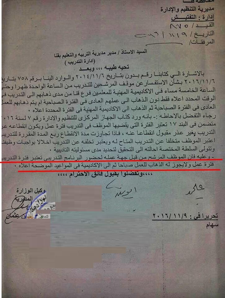 تداول عدد من النشطاء علي مواقع التواصل الاجتماعي"فيسبوك" قرار وزاري هام بشأن مواعيد تدريبات الترقي للمعلمين.