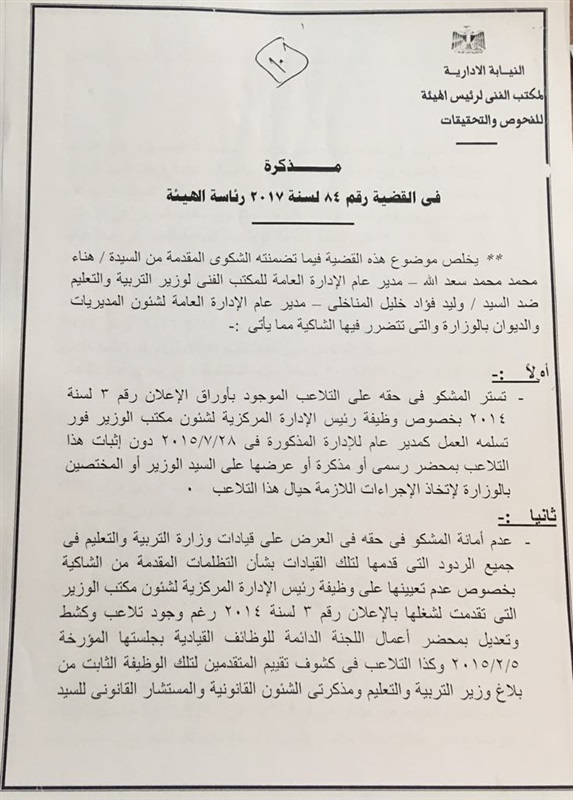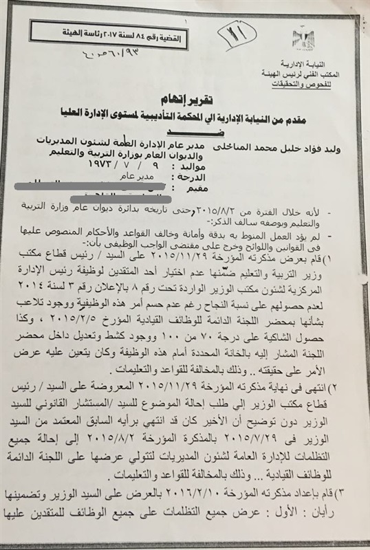النيابة الإدارية تحيل مدير ديوان "التربية والتعليم" للمحاكمة