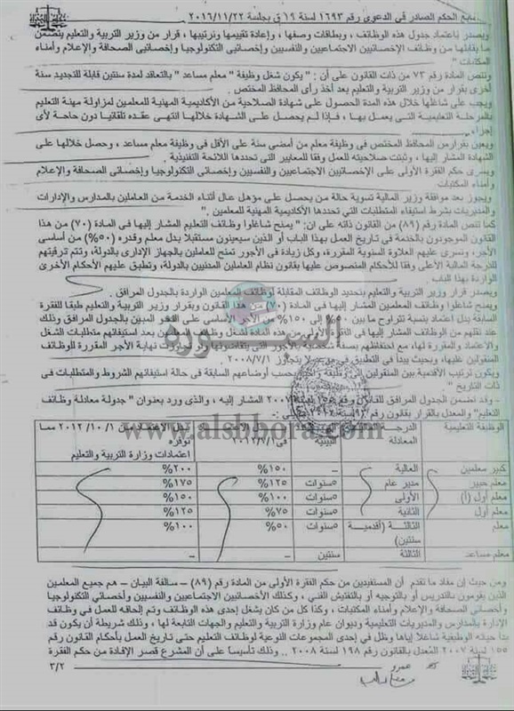 وبالفعل جاء الحكم فى صالح احدى المعلمات كالتالى :