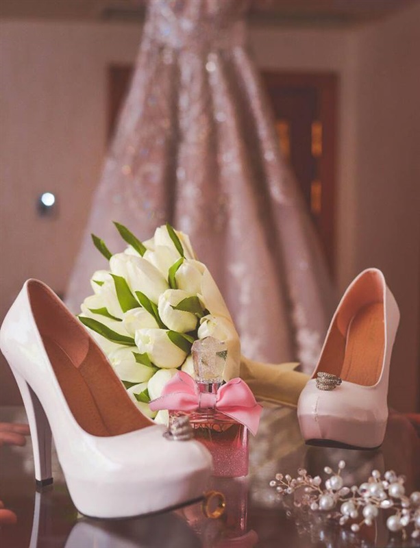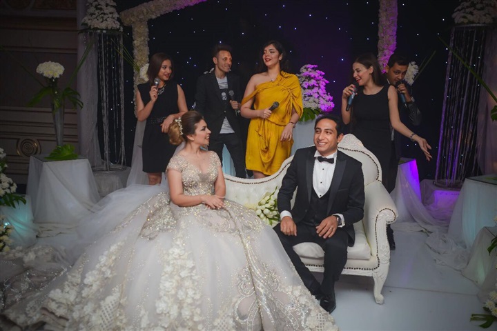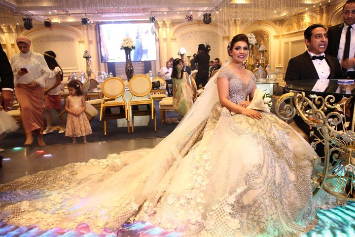تألقت العروس بفستان رائع من تصميم العالمي هاني البحيري وميكب بدور الوكيل وشعر مصطفي محمد والمصور ميلاد نصيف، وشارك في احياء فقرات الحفل النجم الشعبي سعد الصغير وفريق سبايسي ميكس والراقصة كريستال.