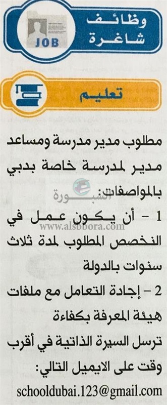 تعلن مدرسة خاصة في الإمارت عن وظائف جديدة للمعلمين والمعلمات وذلك وفقا لنص الإعلان التالي:-