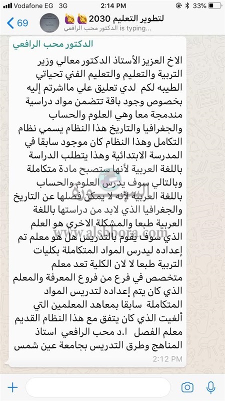 وأضاف خلال تعليق له على جروب تطوير التعليم ٢٠٣٠، أن المشكلة هو المعلم الذي سوف يقوم بالتدريس هل هو معلم تم إعداده ليدرس المواد المتكاملة بكليات التربية طبعا لا، لأن الكلية تعد معلم متخصص في فرع من فروع المعرفة والمعلم الذي كان يتم إعداده لتدريس المواد المتكاملة سابقًا بمعاهد المعلمين التي ألغيت الذي كان يتفق مع هذا النظام القديم معلم الفصل".