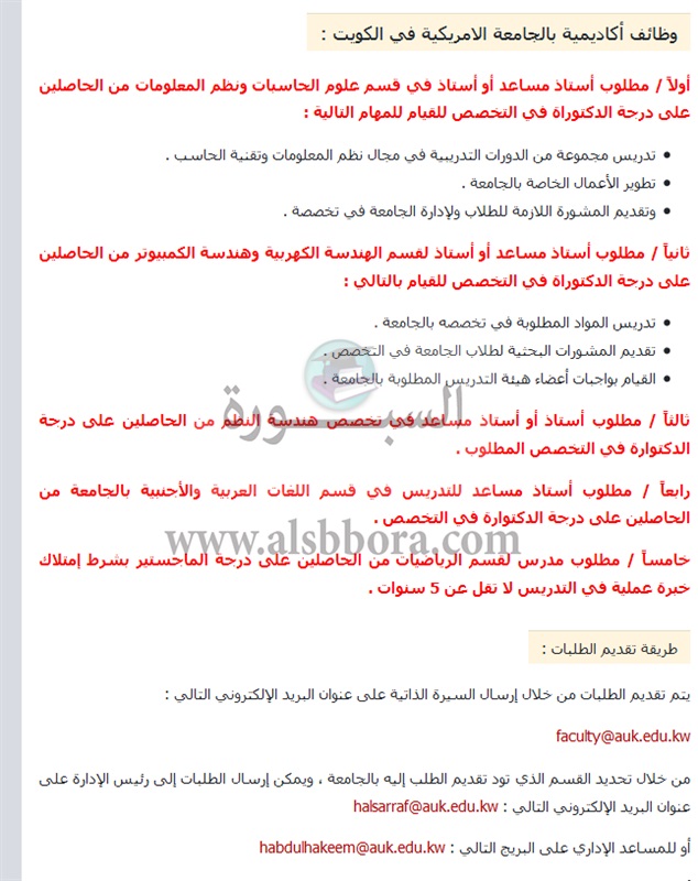 تعلن جامعة كويتية عن وظائف جديدة لأعضاء هيئة التدريس "من معيد إلي أستاذ" وذلك وفقا لنص الإعلان التالي:-