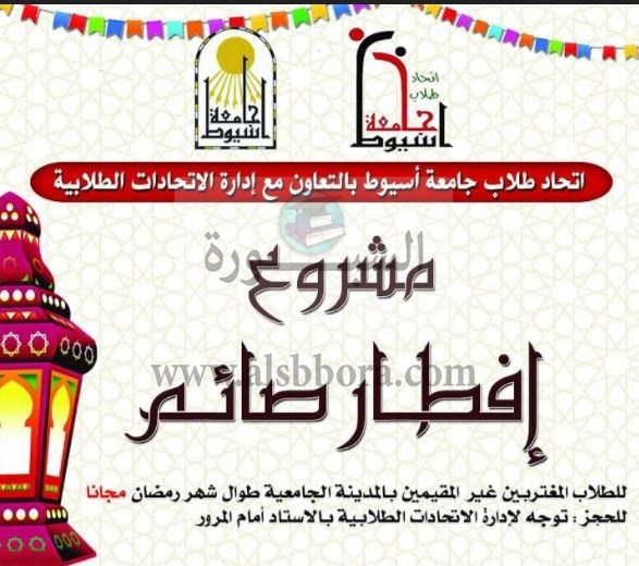 أعلن الدكتور محمد عبد اللطيف نائب رئيس جامعة أسيوط المشرف على قطاع التعليم والطلاب عن أنطلاق حملة " افطار صائم" والتى ينظمها اتحاد طلاب الجامعة وذلك بالتعاون مع إدارة الاتحادات الطلابية خلال شهر رمضان الكريم ، وذلك تحت رعاية الدكتور أحمد عبده جعيص رئيس الجامعة ، وتحت إشراف الدكتور شحاته غريب شلقامى المشرف العام على الأنشطة الطلابية ، و الأستاذ عز المنصورى مدير عام رعاية الشباب ، و الأستاذ أحمد شريت مدير ادرة الاتحادات الطلابية .