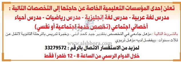 تعلن مدرسة خاصة دولة قطر عن وظائف جديدة للمعلمين والمعلمات وذلك وفقت لنص الإعلان التالي:-