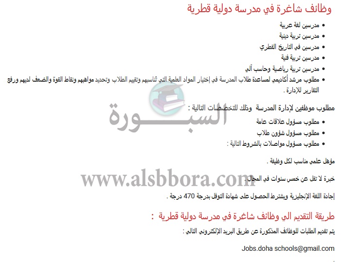 تعلن مدارس الدوحة القطرية عن وظائف جديدة للمعلمين والمعلمات وفقا لنص الإعلان التالي:-