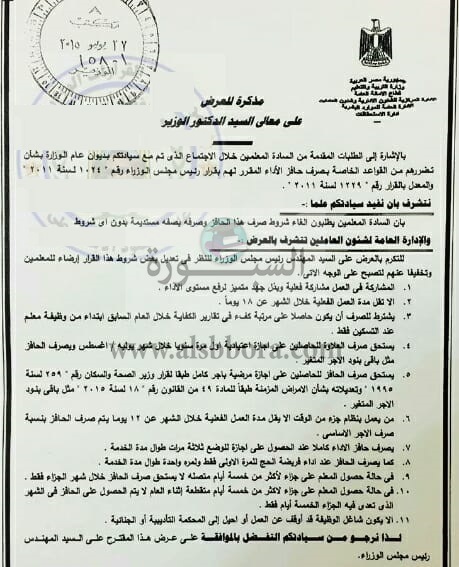 التعليم تعلن شروط جديدة لصرف حافز الآداء للمعلمين خلال شهرى يوليو وأغسطس