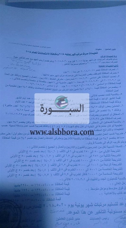 بالمستندات| التعليم تعلن عن الخصومات الخاصة بمكافأة امتحانات 2018 لجميع المعلمين.. "من معلم مساعد وحتى كبير معلمين"