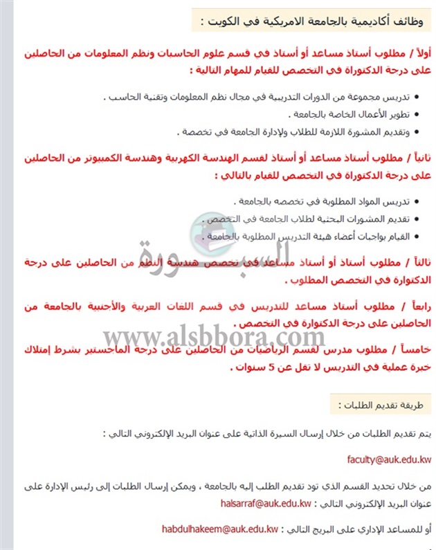 أعلنت جامعة في دولة الكويت عن وظائف جديدة لأعضاء هيئة التدريس "من معيد إلي أستاذ" وذلك وفقا لنص الإعلان التالي: