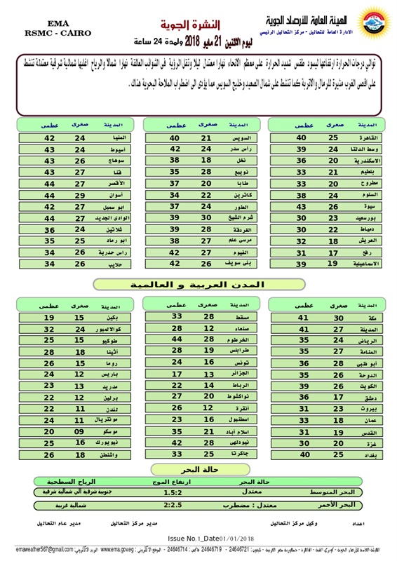 الارصاد تحذر من ارتفاع شديد لدرجات الحرارة ليوم الاثنين