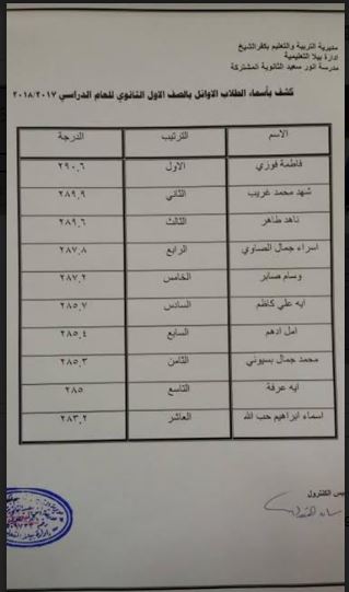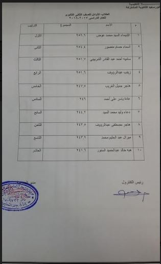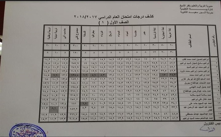 ننشر نتيجة الصفين الأول والثانى بمدرسة أنور سعيد الثانوية فى بيلا