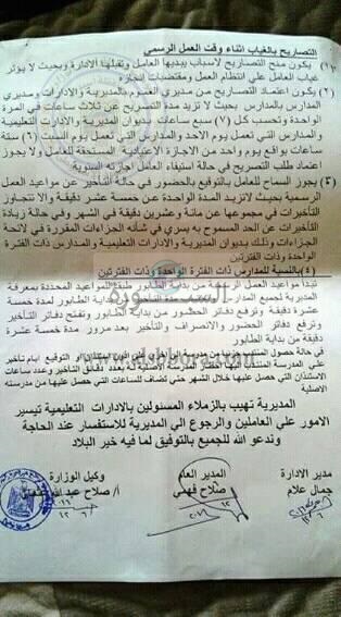 تنشر "السبورة" ضوابط الحصول علي تصريح بالغياب أثناء وقت العمل الرسمي للمعلمين في رمضان والذي تداولها عدد من المعلمين علي موقع التواصل الاجتماعي"فيسبوك".