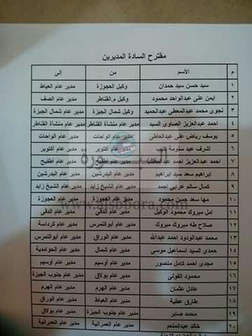 وكانت أعلنت مديرية التربية والتعليم بالجيزة، القائمة المبدئية للأسماء التي تم اختيارها للحركة، وتم اعتمادها من قبل اللواء محمد كمال الدالي.