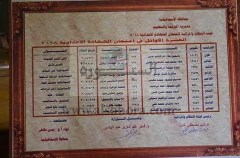 ننشر.. اوائل الشهادة الاعدادية بالاسماعلية