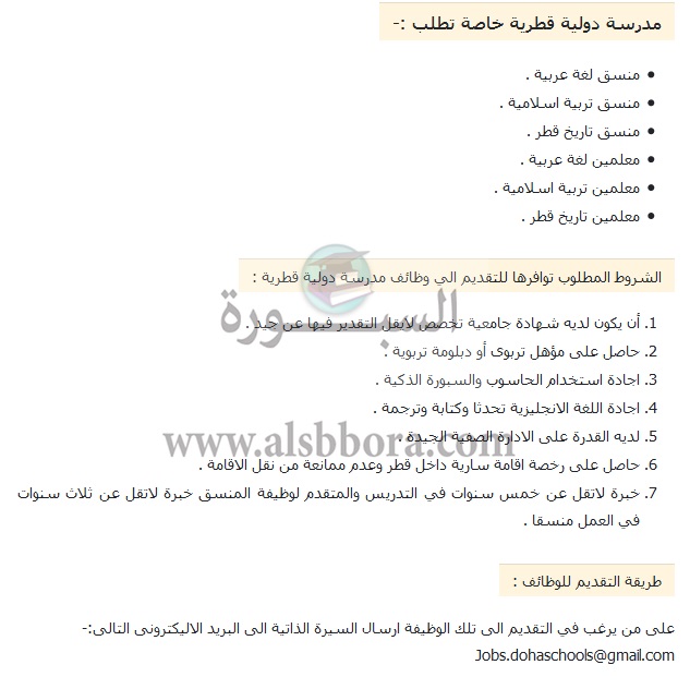 تعلن كبري المدارس القطرية عن وظائف جديدة للمعلمين والمعلمات في 6 مواد وذلك وفقا لنص الإعلان التالي:-