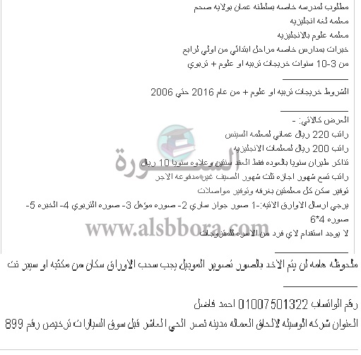 تعلن مدرسة خاصة في سلطنة عمان عن وظائف جديدة للمعلمين والمعلمات وذلك وفقا لنص الإعلان التالي :