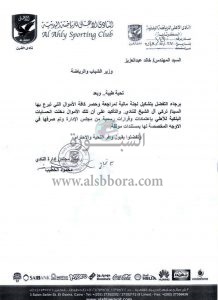 جاء ذلك في خطاب رسمي أرسله رئيس النادي لوزير الشباب والرياضة ظهر اليوم.