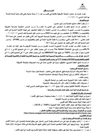 التعليم تعلن عن منحة امريكية لطلاب الثانوية العامة.. ننشر الشروط