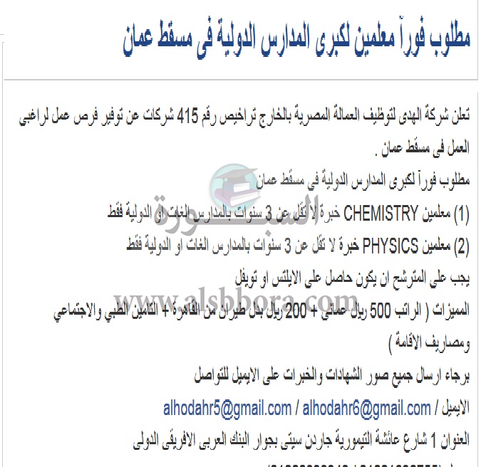 تعلن مدرسة خاصة في سلطنة عمان عن وظائف جديدة للمعلمين والمعلمات وذلك وفقا لنص الإعلان التالي:-