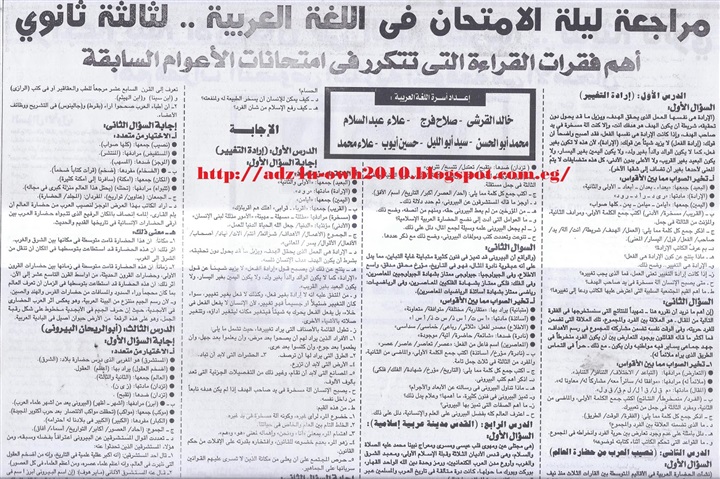 المراجعة النهائية لليلة الامتحان لمادة اللغة العربية للثانوية العامة من ملحق الجمهورية