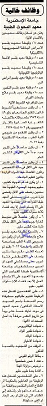تعلن جامعة الإسكندرية عن وظائف جديدة لأعضاء هيئة التدريس "من معيد إلي أستاذ" وذلك وفقا لنص الإعلان التالي:-