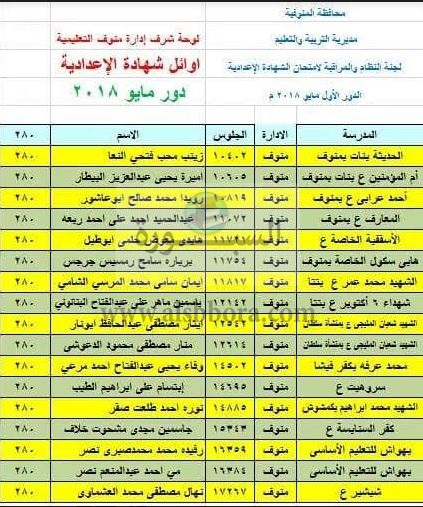 ننشر..أوائل الشهادة الاعدادية بالمنوفية 2017- 2018