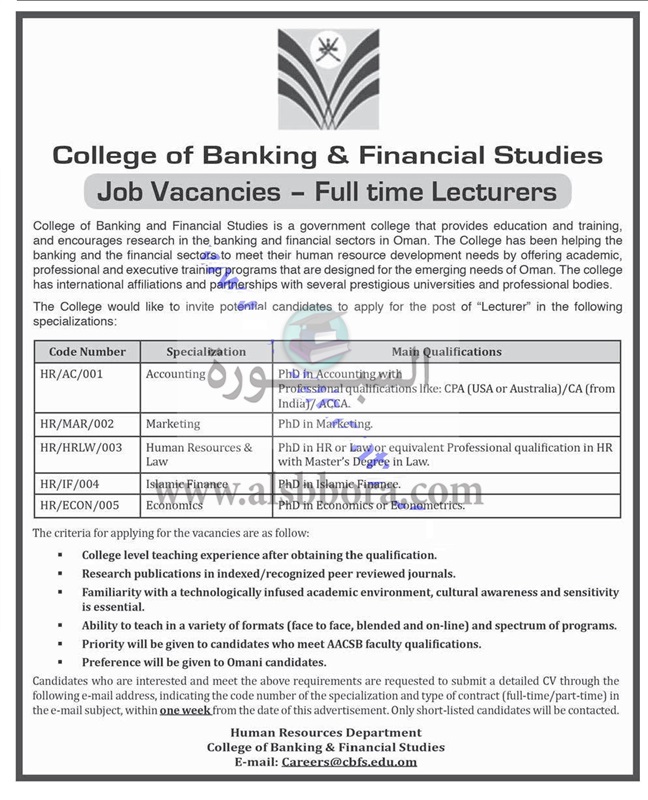 تعلن جامعة عمانية عن وظائف جديدة لأعضاء هيئة التدريس "من معيد إلي أستاذ" وذلك وفقا لنص الإعلان التالي:-