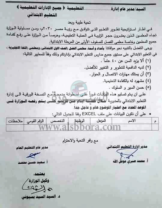فاكسا مهما الى جميع معلمى التعليم الأساسى على مستوى الجمهورية.. والتنفيذ خلال 10 أيام