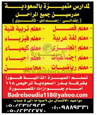 تعلن مدارس جدة السعودية عن وظائف جديدة للمعلمين والمعلمات في جميع التخصصات وذلك وفقا لنص الإعلان التالي:-