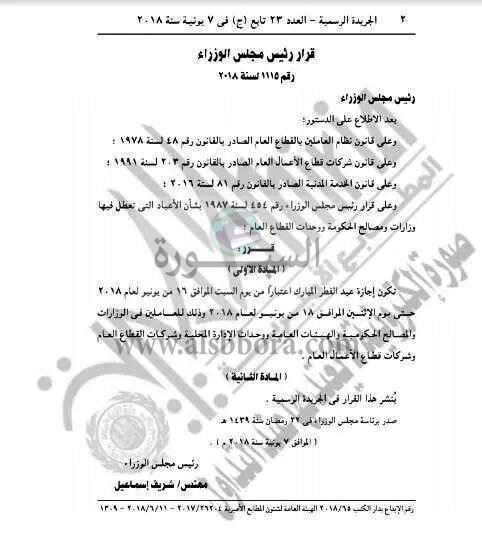 بالمستندات | ننشر نص قرار رئيس مجلس الوزراء الخاص بإجازة عيد الفطر