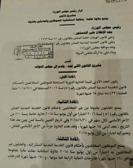 ننشر لكم قرارا موافقة لجنة القوى العاملة بمجلس النواب على منح علاوة خاصة وعلاوة استثنائية للموظفين والعاملين بالدولة، وذلك بحضور وزير المالية عمرو الجارحى، ووزير قطاع الأعمال العام خالد بدوى.