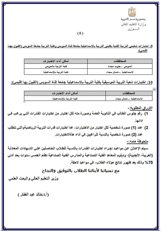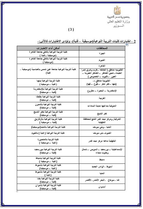 شعبتا التربية الفنية والموسيقية بكليات التربية النوعية.
